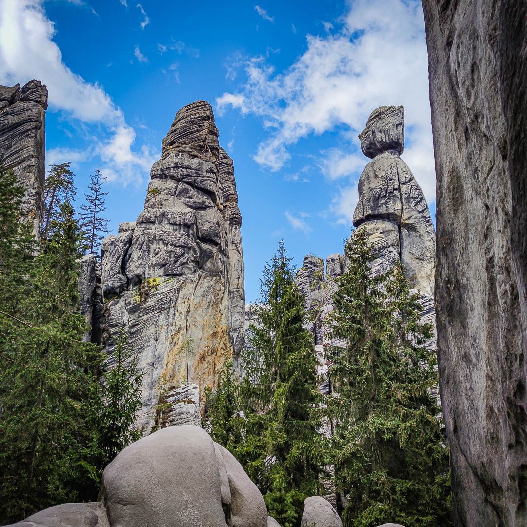 SKALNEGO MIASTA (Czechy), czyli wędrówka po bajkowym świecie fantastycznych form skalnych (wieże, zamki, ściany, twory o oryginalnych kształtach np. kochankowie, starosta, myśliwy, diabelski most, dzban, bliźnięta, wieże, mosty, wilczy jar, ogrody, amfiteatr, wielki i mały wodospad itp.), które osiągają wysokości bliskie 100 metrów, a wędrujący człowiek wydaje się odrobiną wobec potęgi przyrody; w trakcie wycieczki uczestników oczekuje również atrakcyjny, pełen emocji rejs łodzią pośród skał